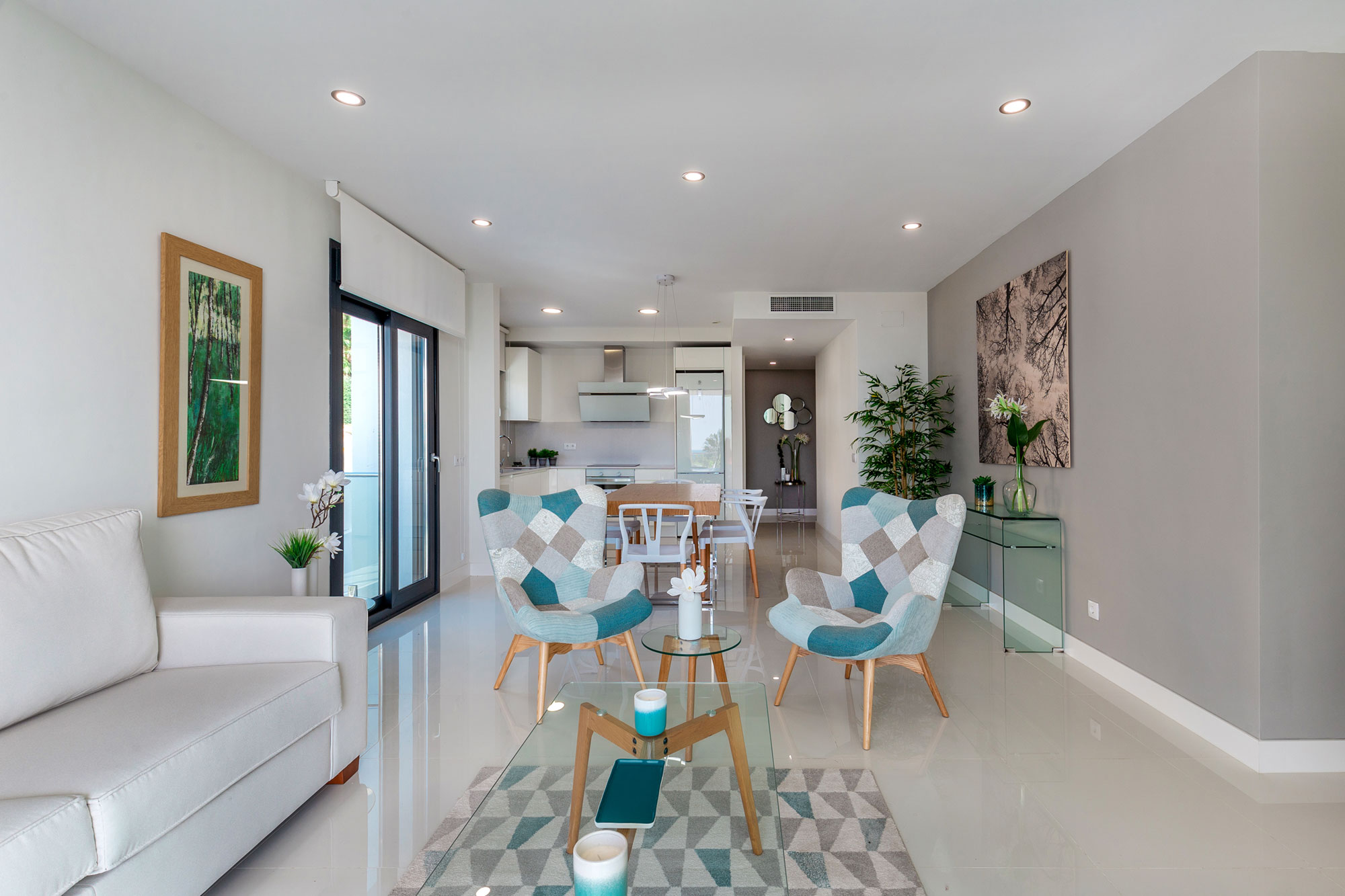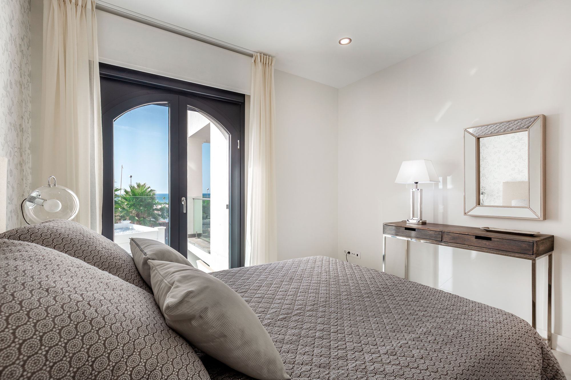 Salones con grandes ventanales que iluminan toda la estancia, con acceso a grandes terrazas frente al mar. Cocinas abiertas al salón, de diseño y líneas limpias. El perfecto equilibrio entre la tradición mediterránea y la modernidad más urbanita.