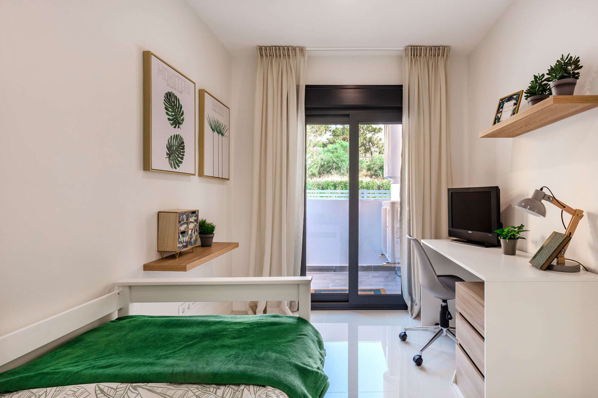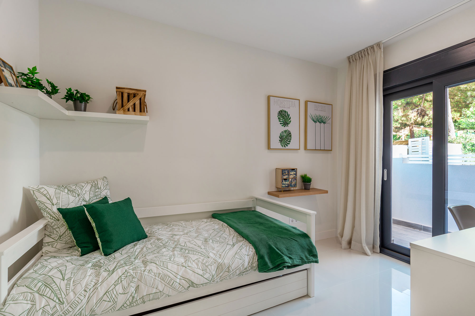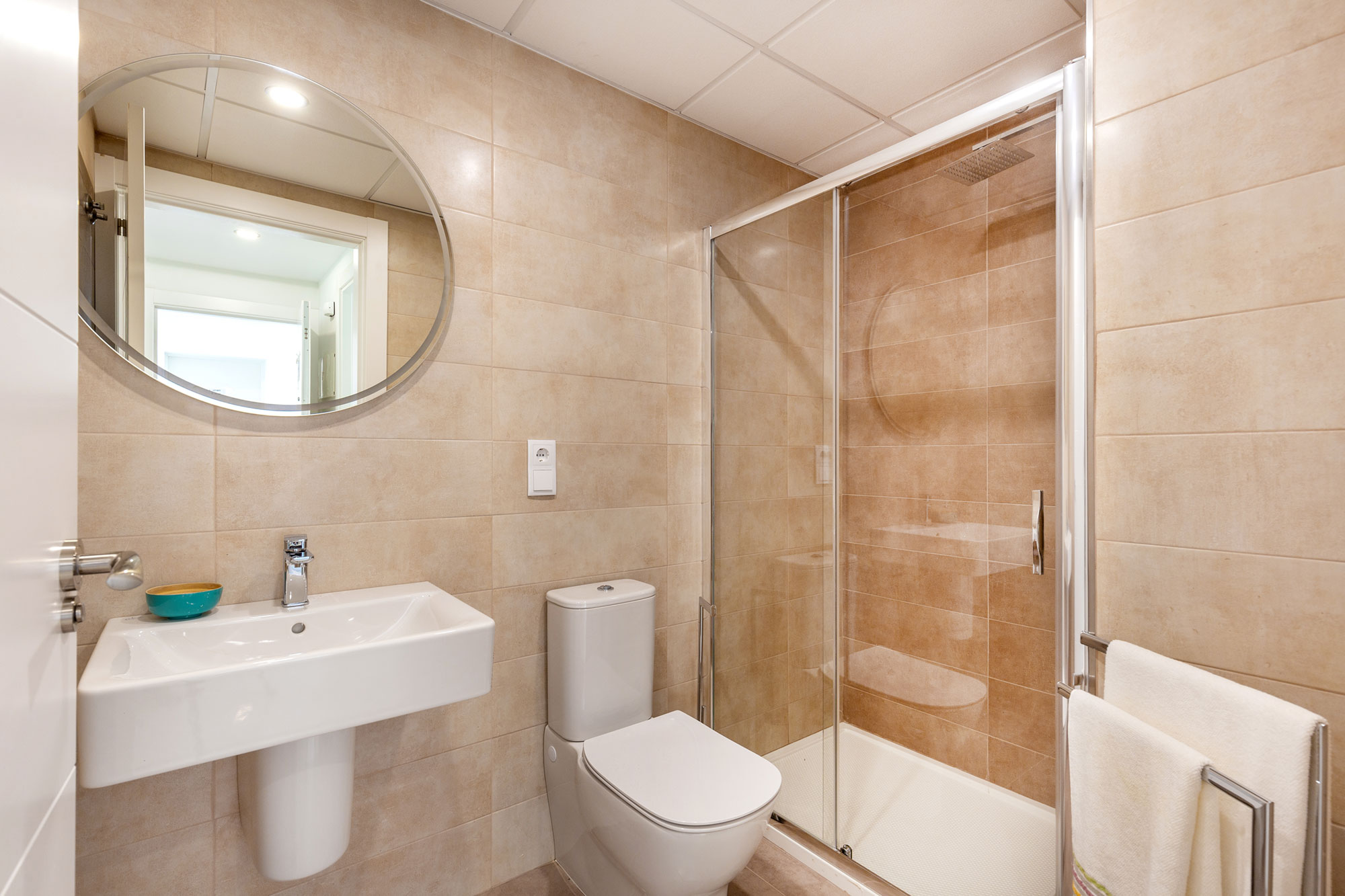 Dormitorios con luz natural y baños en suite con sanitarios de primera calidad. Puertas de paso en color blanco. Acabados, equipamientos y calidades de primera clase. Una combinación única de diseño y sostenibilidad.